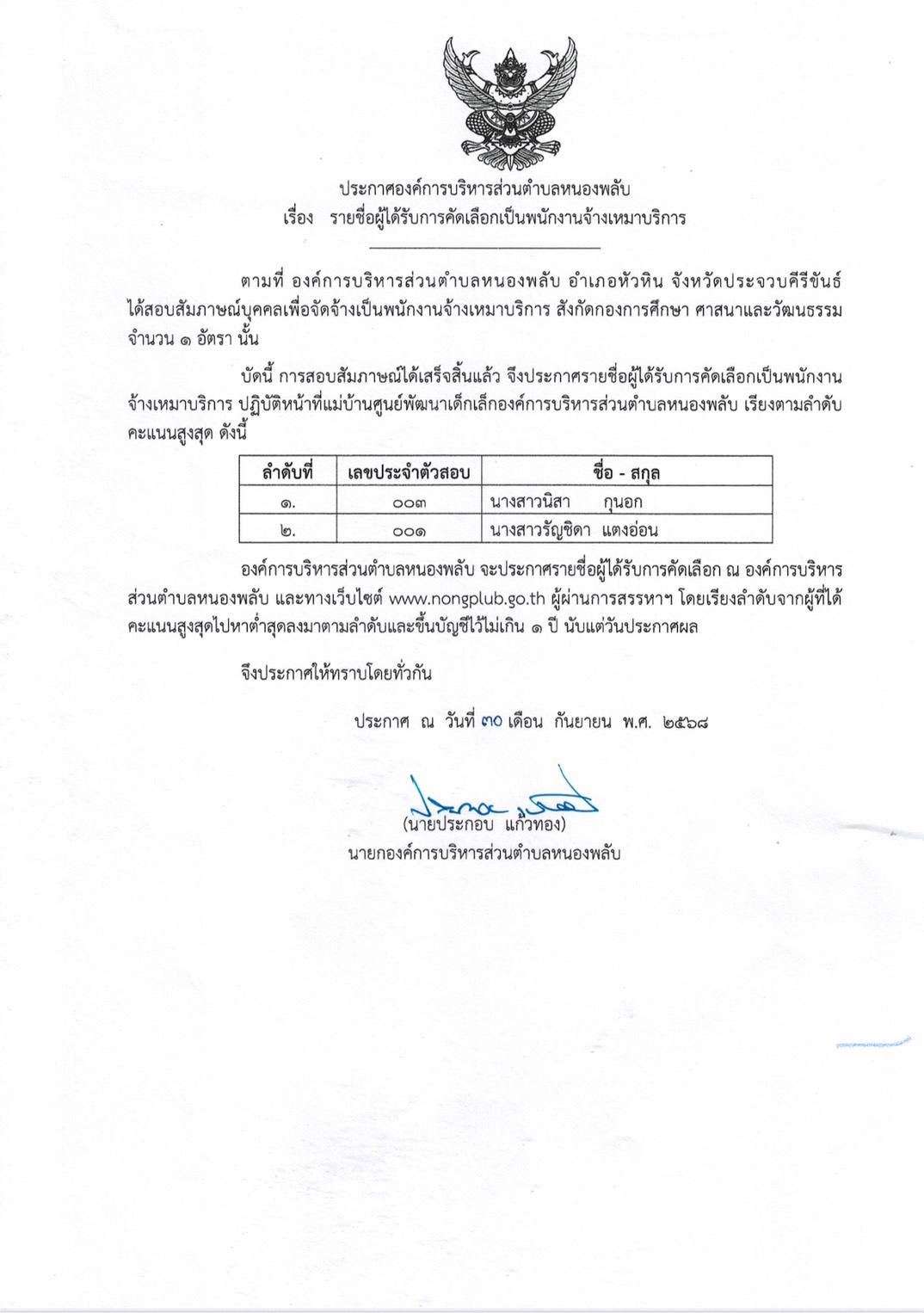 ต่อเติมอาคารสถานที่ทำการองค์การบริหารส่วนตำบลหนองพลับ อำเภอหัวหิน จังหวัดประจวบคีรีขันธ์